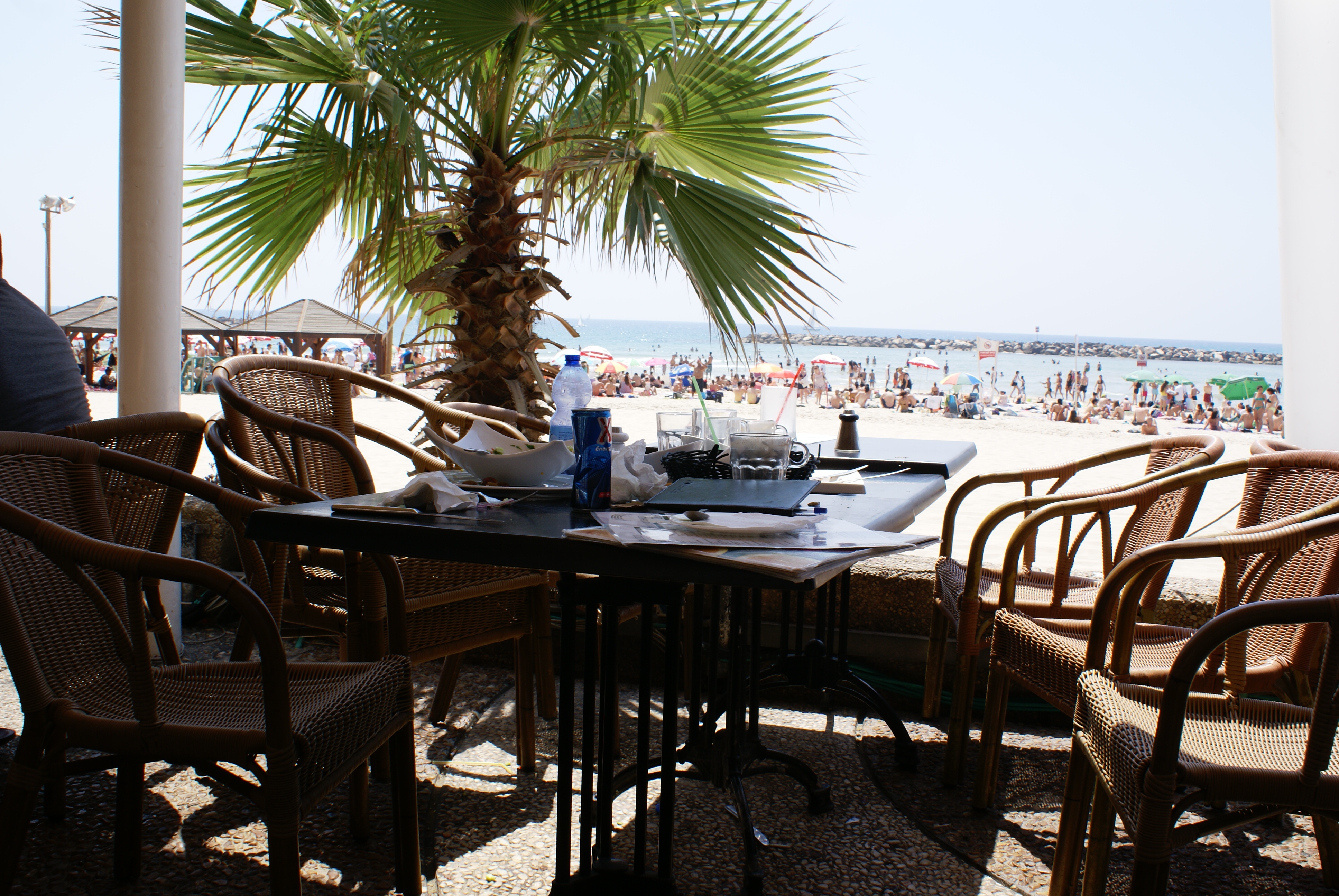 Yesterday was Shabbat, and as such most of the shops and businesses were closed. The beach, however, was crowded with masses of people of all ages, enjoying the sun and unbelieveably hot weather. It was far too hot and humid for me, however, so D and I retreated to our hotel room after lunch and hid from the elements.