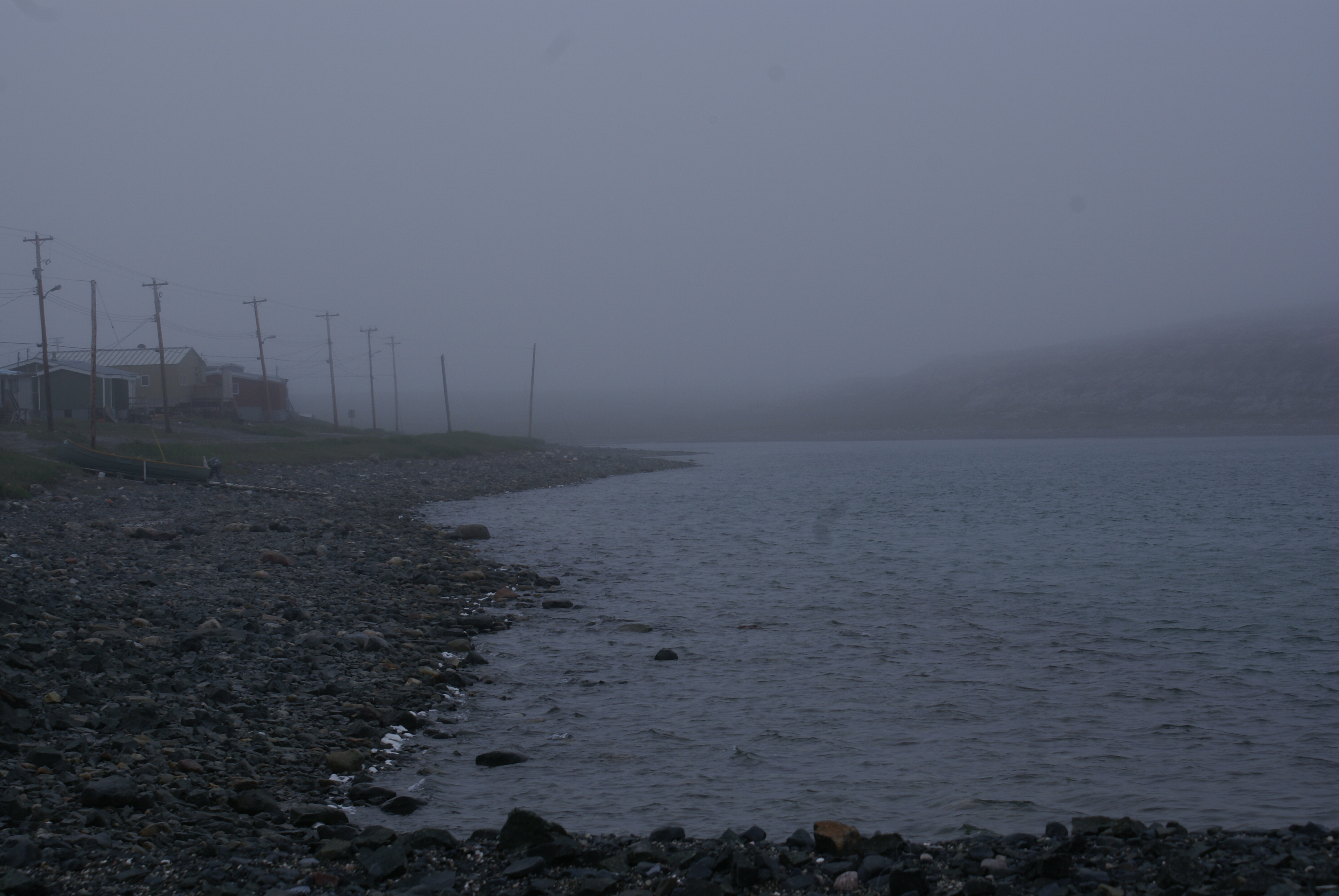 It’s been cold, wet, and foggy for the last three days in Sanikiluaq. The fog and poor visibility have grounded all flights into the community. Walking around after work this evening, I was pleased to note that the nasty weather has at least driven the mosquitoes away.