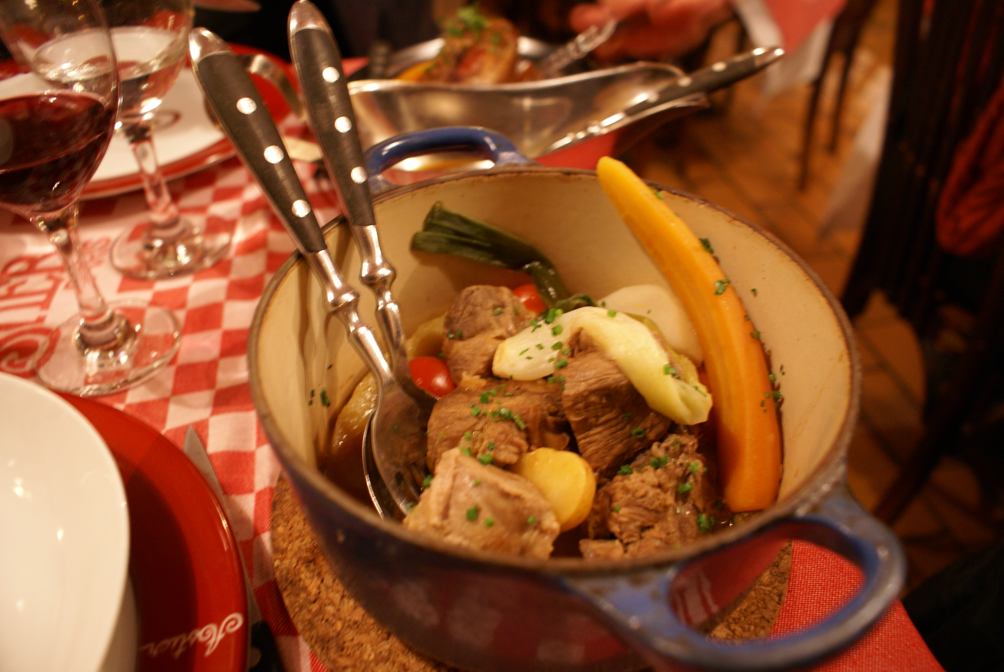 The most charming part about Philou, aside from their genial staff, is the giant chalkboard walls on which are printed the daily menus and wine lists. Unusual for Paris, they also offer a generous number of wines by the glass, half-litre, and litre, which is incredibly useful when diners at the same table are eating disparate things. Not that it’s a big deal if you’re forced to drink a red with a pan-fried white fish because your companion is eating a great bloody steak, but the ability to choose glasses of wine instead of full bottle might take the edge off of the ensuing hostility. Not that I speak from experience.