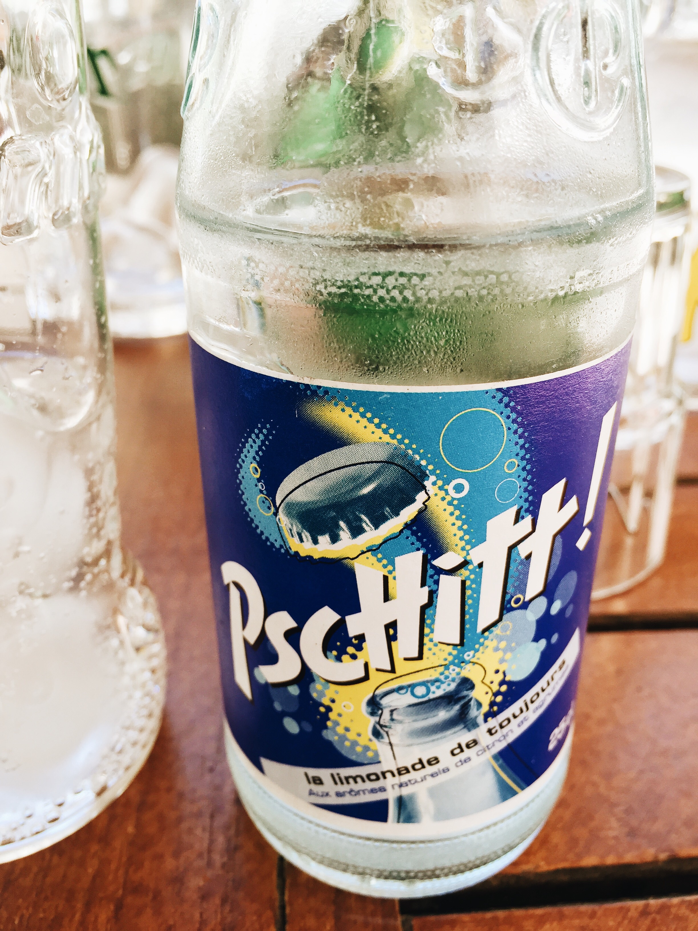 There is a drink here in the south called “limonade” made by Pschitt, which I enjoyed for the first time 3 years ago when we were in Arles. I always think it is the best drink EVER, fizzy, cold, lemon-lime tasting, and served in its own special glass etched with “Pschitt” and filled with ice. I remember raving to D the first time I tasted it, as though I had discovered some new, incredible beverage that I just could not believe was not available at home in Canada. Halfway through that first limonade, however, I realized that in fact, the drink does exist in Canada….but it’s called Sprite. Whatever. It’s still delicious, and I love it every time we sit at a café and I proudly order the thing!