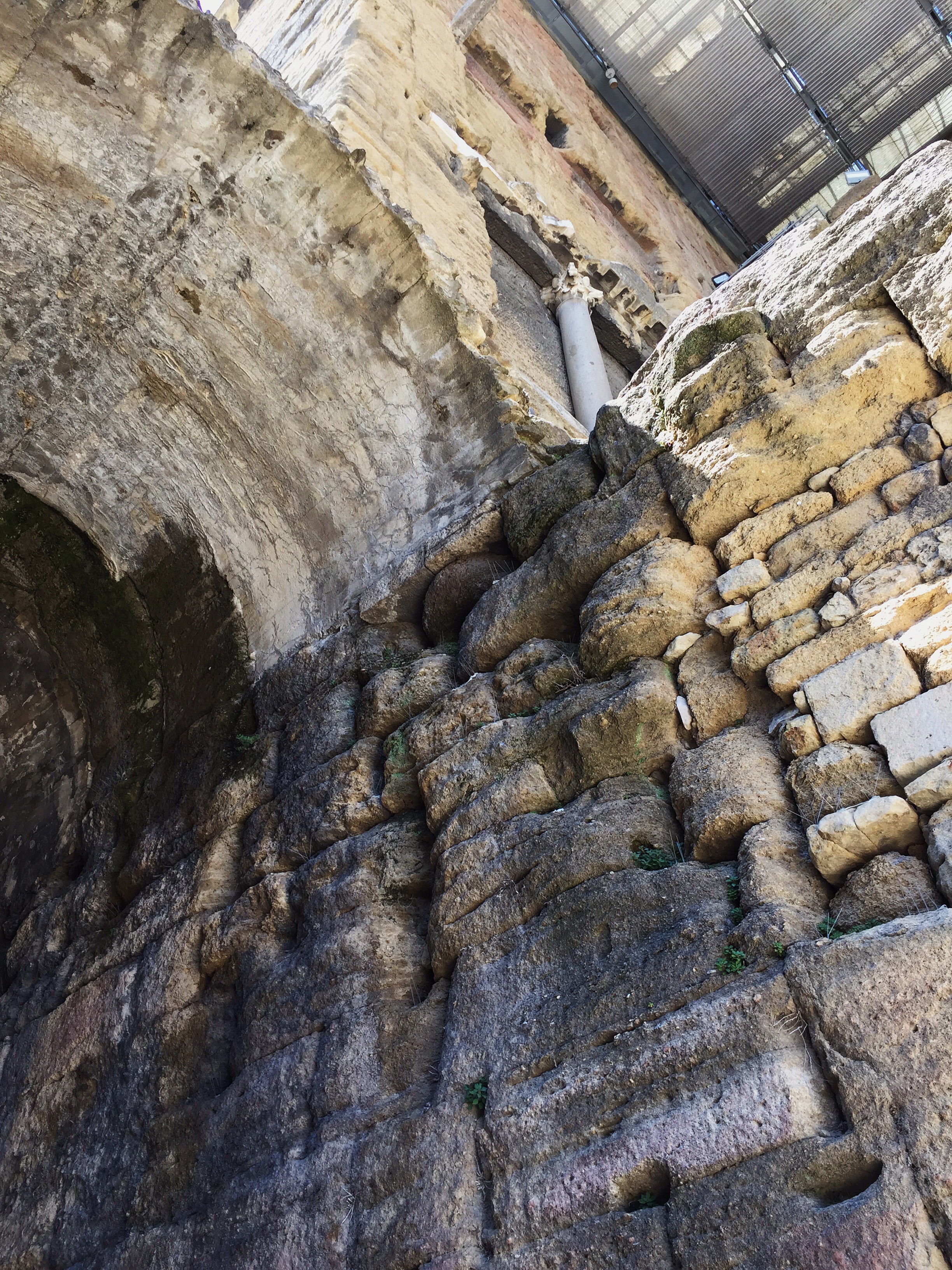 After a leisurely lunch, we visited Orange’s Roman theatre, which dates to the 1st century AD. This amphitheatre is remarkably well-preserved and still holds up to 9000 people for shows; in fact, on the day we visited, a work crew was busy setting up the stage in preparation for a new show. This theatre (which once held a giant statue of Caesar Augustus behind the main stage), is listed by UNESCO as a World Heritage Site.