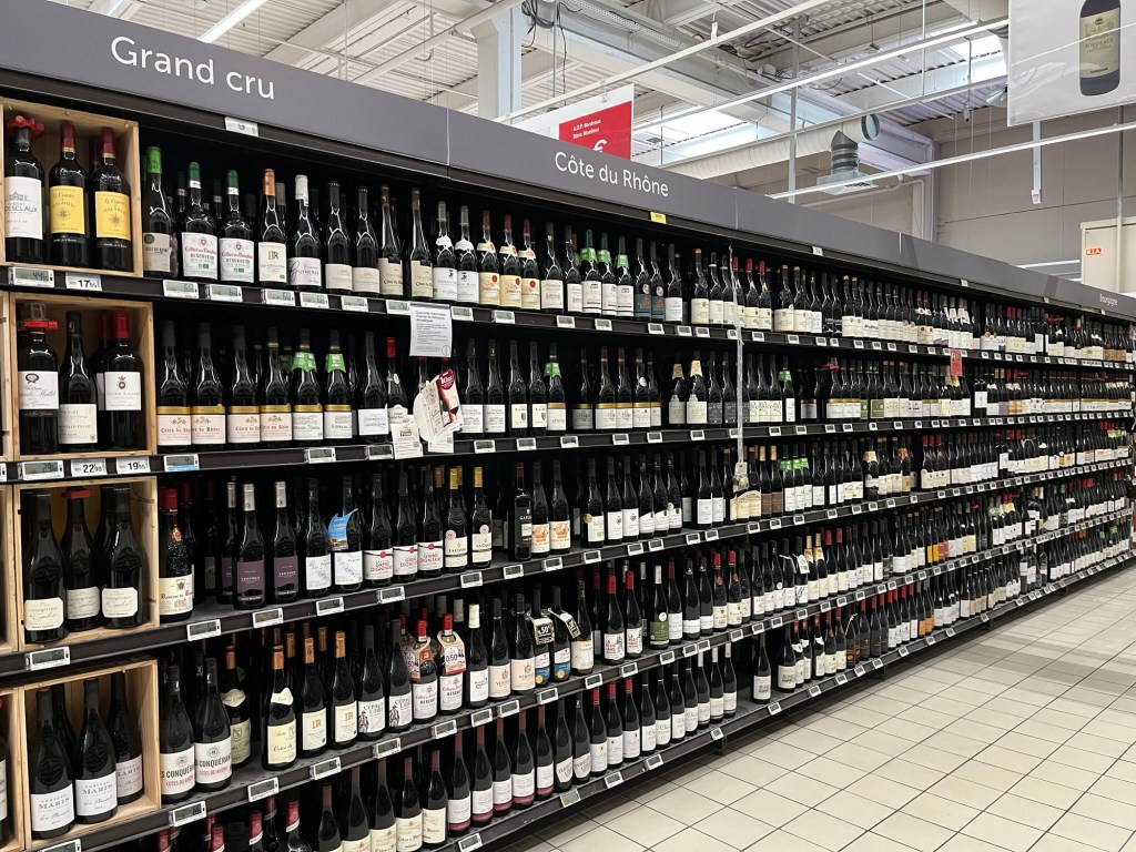 Adventures in Nîmes! I love that first picture of the wine bottles at the grocery store. 🤩 and that dessert looks amazing.