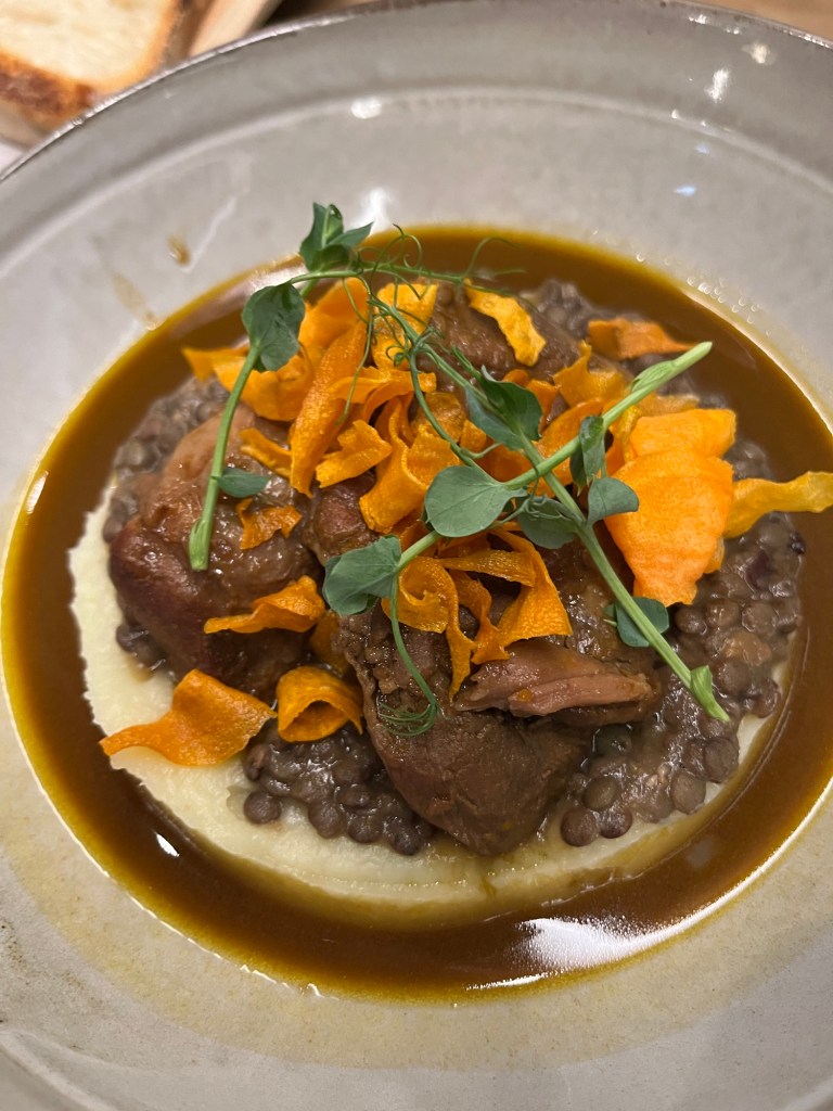 Cochon-joue…lentille verte, panais, bière